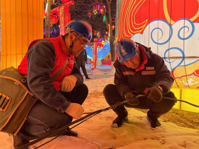 “小王,测量一下开关上的温度是否正常?咱们一定要细致检查,不放过任何细节,一点差错都不能有,要让游客们开心赏灯、快乐过节。”自宁州不夜城开业以来,该公司人员每天都会对花灯展区的电力线路、设备开展巡视,监测电网运行情况,确保关键设备不出故障。时间一分一秒地过去,已到半夜,但工作人员的巡视脚步仍未停歇……