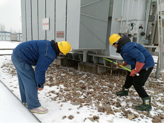 2月21日,国网安徽濉溪县供电公司运维人员在110千伏口子变电站清冰除雪,消除安全隐患,保障供电设备安全稳定运行。