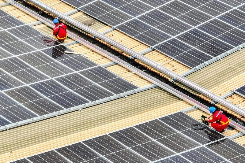 传统的屋顶光伏发电系统安装在建筑物屋顶,需砌筑水泥墩安装固定光伏板支架,平均10平方米累计重量约400千克。而海岛工厂多以彩钢瓦覆盖,承重力有限,且彩钢瓦拆除费用每千平方米高达百万元,这让大多数企业望而却步,“不拆瓦”建筑光伏给出了解决新思路。“由于不用拆屋顶彩钢瓦,这为我们省下了数百万元费用。施工工期也较同规格建筑光伏一体化项目缩短3个月,帮我们赶在了迎峰度夏用电高峰前投入使用。”潘飞说。