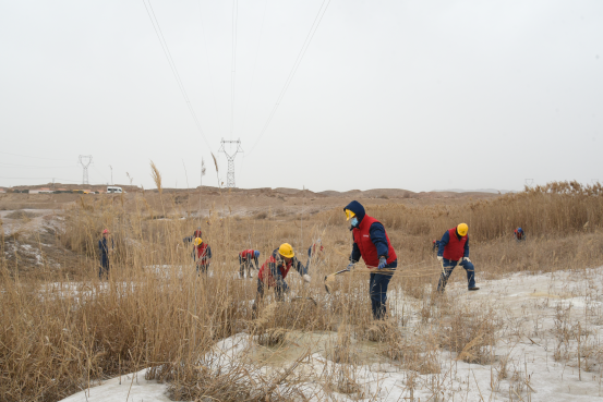 2月19日,农历正月初十,在离甘肃省白银市区11公里的一片芦苇荡里,国网白银供电公司白银输电运检中心一支防山火队伍正在清理220千伏银沙线下一片芦苇,寒风中密集的“咔嚓、咔嚓”声此起彼伏。