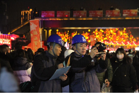 图为国网兰州供电公司员工保障甘肃兰州白塔山及中山桥景区电力可靠供应。韩甜甜 摄