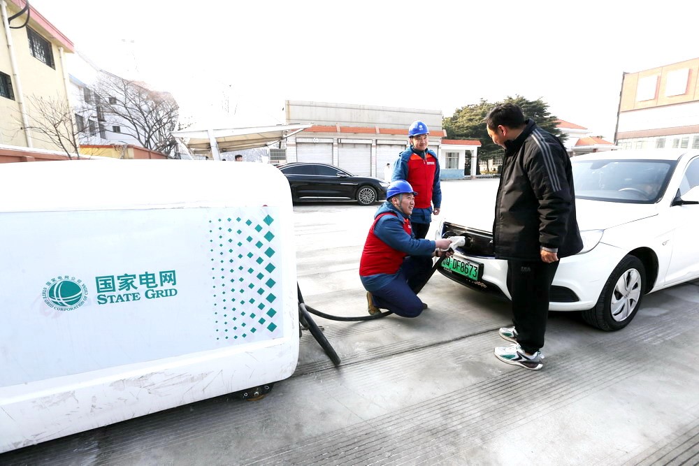 国网枣庄供电公司首次在高速服务区配备10台移动式充电桩,助力客户绿色出行。(鞠同心 摄)