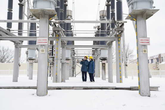 2月5日,大雪过后,国网青岛供电公司工作人员加强对220千伏市中站室外设备的巡视。梁青/摄
