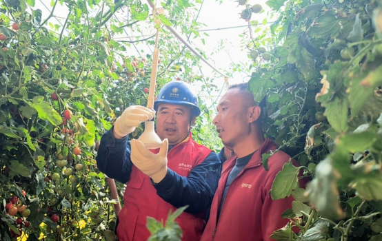 2月6日,国网甘肃兰州供电公司西固供电分公司新城供电所台区经理钱其铭和同事王立胜走进兰州市西固区河口镇张家台村的现代化温室里,帮助农户检查大棚用电设备。只见一串串西红柿挂在绿叶间,一颗颗草莓鲜艳诱人,空气里弥漫着浓浓的果蔬香。