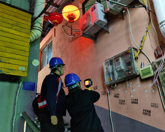 当晚,低压综合服务班工作人员不畏严寒,穿梭于城市的大街小巷。他们手持测温仪,仔细检查每一个配电柜、变压器和线路接口,不放过任何一个可能存在隐患的地方,认真对各个区域的供电设备进行了测温,保障设备运行正常,为居民们在春节期间能够安心用电提供了有力支持。