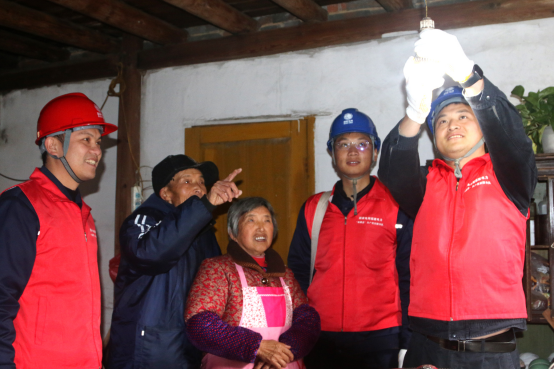 “大娘,外面冷,您先进屋去。您眼睛不舒服,多休息,哪里的灯不亮了告诉我就好,放心,我们来处理。”8时30分,练继伟一行到达富岭镇大水口村毛源自然村兰月英大娘家。一见面,练继伟把兰大娘扶进屋后,到厨房检修线路和灯具。经检查发现,大娘家厨房开关老化,接触不良造成灯不亮。练继伟及时处理帮忙更换老旧开关,灯亮了,大娘家用电恢复正常。
