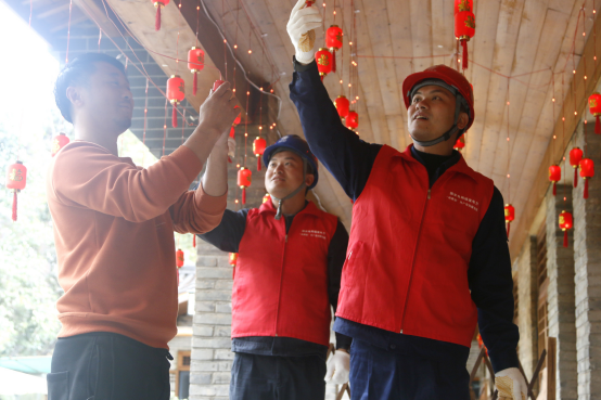 消缺后,练继伟一行开始贴对联、贴福字。张灯结彩,洋溢着喜庆氛围,喜庆的中国红为新春佳节营造了氛围,大家感受到新春喜悦,寄托了大家对新春的美好祝福与期盼。