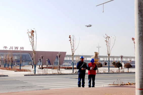 在高铁站附近的10千伏117新墩线,该公司人员运用“无人机+人工”的巡检方式,按照“全面覆盖、不留死角”的要求,对跨越高铁段的杆塔、线路重点进行排查,及时掌握跨越区段线路警示牌、弧垂、地理环境、建筑物等详细情况及金具、线夹、绝缘子、导地线等设备运行状况,并对每一处跨越线路的地方进行拍照、详细记录。