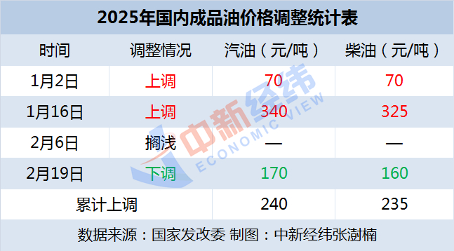 今年以来,国内油价已经历四轮调价窗口,分别为“两涨一跌一搁浅”。调价后,国内汽、柴油价格每吨较2024年底分别上涨240元、235元。若本轮调整落地,2025年调价格局将变为“两涨两跌一搁浅”。