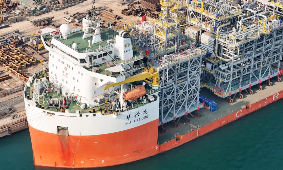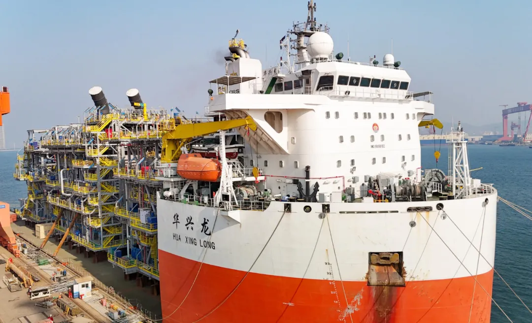 ▲1月13日,40万吨级超大型“海上油气工厂”上部模块从青岛西海岸新区装船起运。张进刚 摄