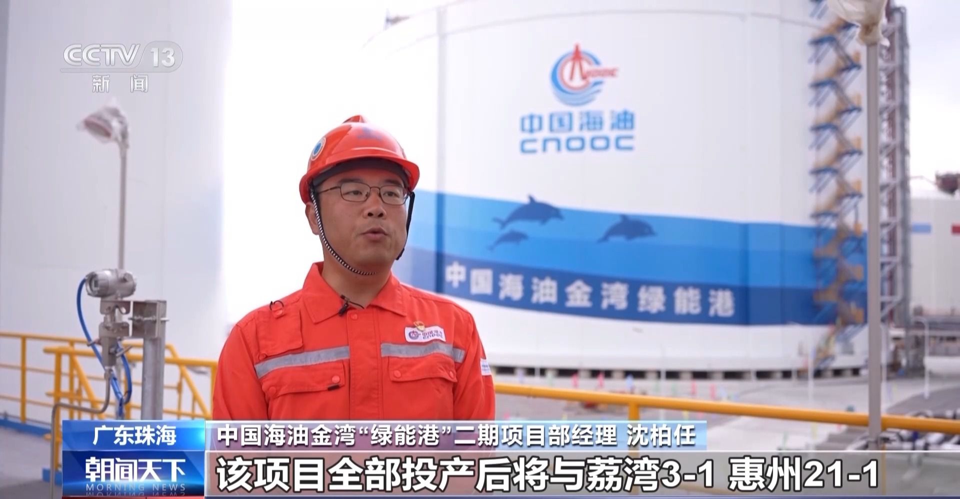 中国海油金湾“绿能港”二期项目部经理 沈柏任:该项目全部投产后将与荔湾3-1、惠州21-1、番禺30-1等海上气田形成互补,供气覆盖广州、佛山、珠海、中山、江门等城市,保障粤港澳大湾区和华南地区能源安全。