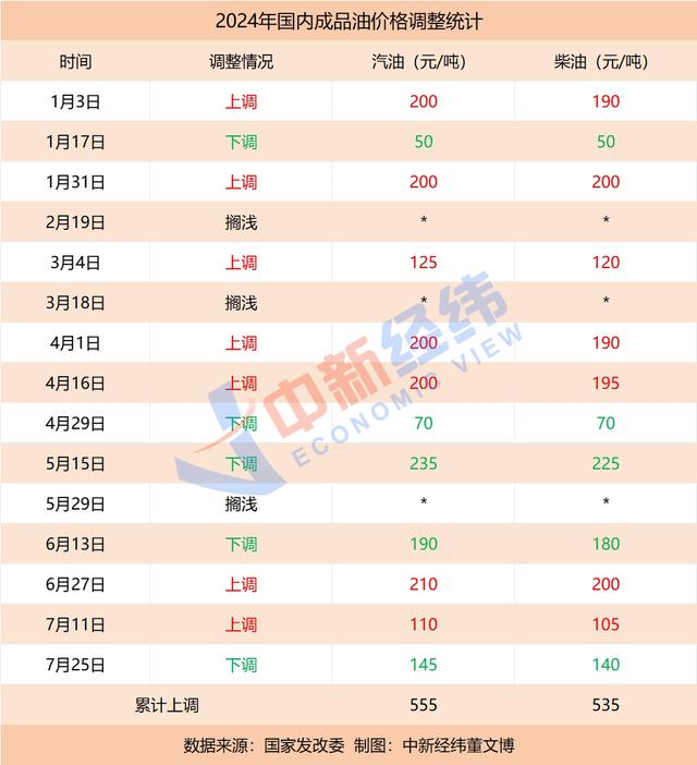 据中新经纬统计,今年以来,国内油价已经历十五轮调整,呈现“七涨五跌三搁浅”的格局。涨跌互抵后,国内汽、柴油价格较去年底分别提高555元/吨、535元/吨。