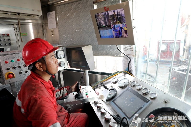 中国石油集团渤海钻探工程有限公司库尔勒分公司80008钻井队承钻副司钻进行钻井作业。塔里木油田/供图