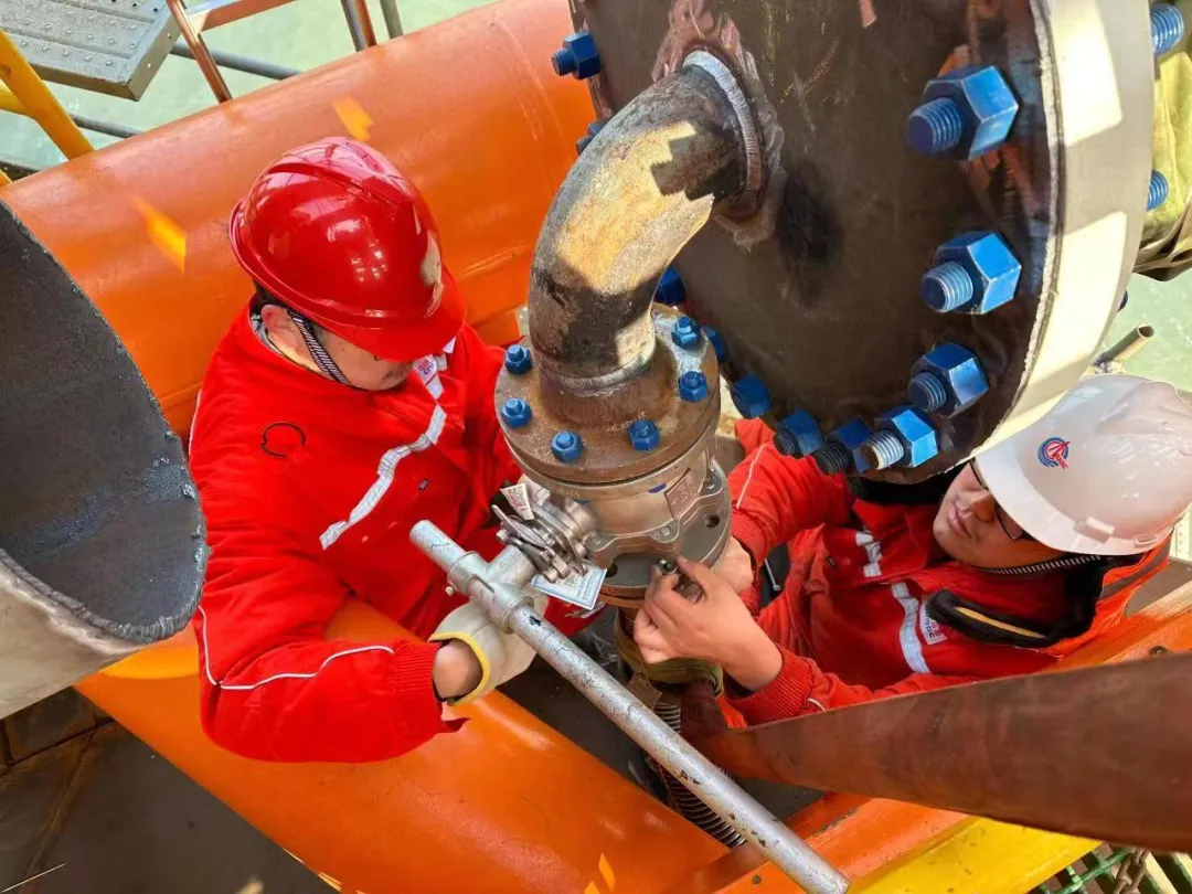 ▲绥中36-1油田作业人员正在检修