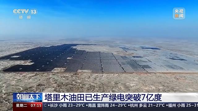 我国首条零碳沙漠公路所在的塔里木油田,目前在塔克拉玛干沙漠腹地及其边缘建成总装机规模达130万千瓦的四座光伏电站,这四座光伏电站累计生产绿电超7亿度,为电力供应迎峰度夏、经济社会绿色发展提供保障。
