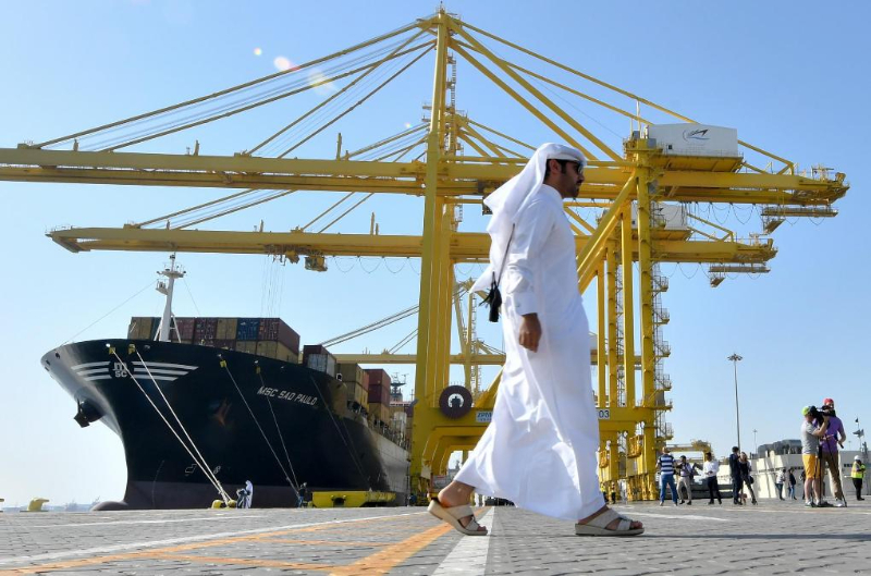 2017年6月14日,一名男子从卡塔尔首都多哈的哈马德港口走过。新华社发(尼库摄)