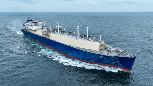 5月30日,由中国船舶集团有限公司旗下沪东中华造船(集团)有限公司自主研发设计建造的17.4万立方米大型液化天然气(LNG)运输船“华山”号,较合同期提前7个月在长兴岛厂区命名交付。这是继5月15日“绿能瀛”号,半个月完工交付的第2艘大型LNG船,创下了沪东中华历史上首次实现单月交付2艘大型LNG船的新纪录,也是该公司实施LNG产能倍增战略取得的新成绩。