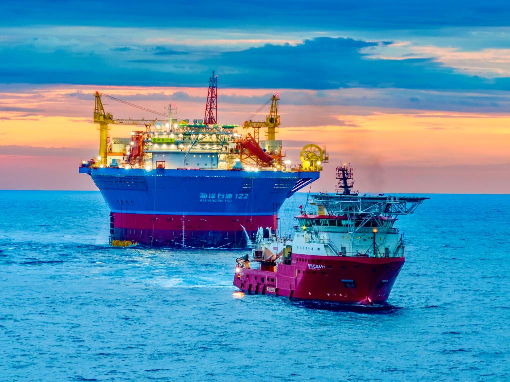 5月29日,我国自主设计建造的亚洲首艘圆筒型“海上油气加工厂”——“海葵一号”运抵珠江口盆地的流花油田海域。