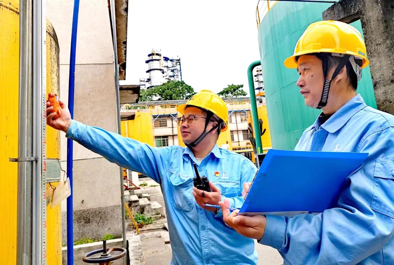 2月26日,广州石化岗位人员正在化学水装置检查低温环境下的液氨使用情况。