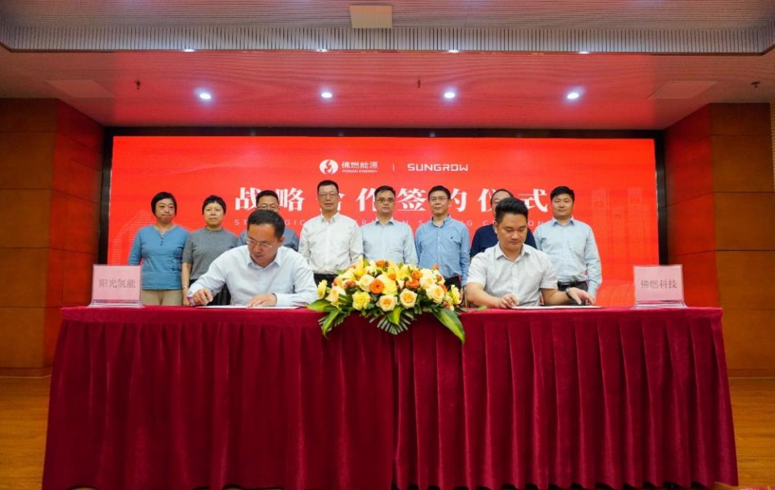 2月22日下午,佛燃科技与阳光氢能在佛山燃气大厦签署《战略合作框架协议》。阳光电源副总裁、阳光氢能董事长彭超才,佛燃科技总经理阮鹏签署协议,佛燃能源董事长尹祥、总裁徐中、副总裁谢丹颖、以及签约双方代表一同出席签约仪式。