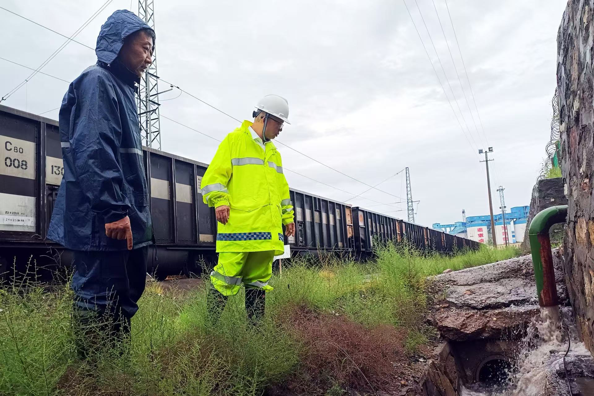 图为神东煤炭总调度室组织相关工作人员对重点区域排水沟开展强降雨特巡。吴光丽 摄