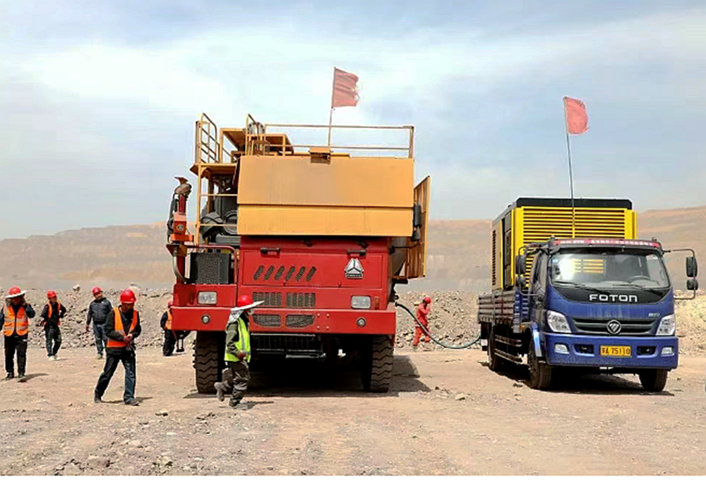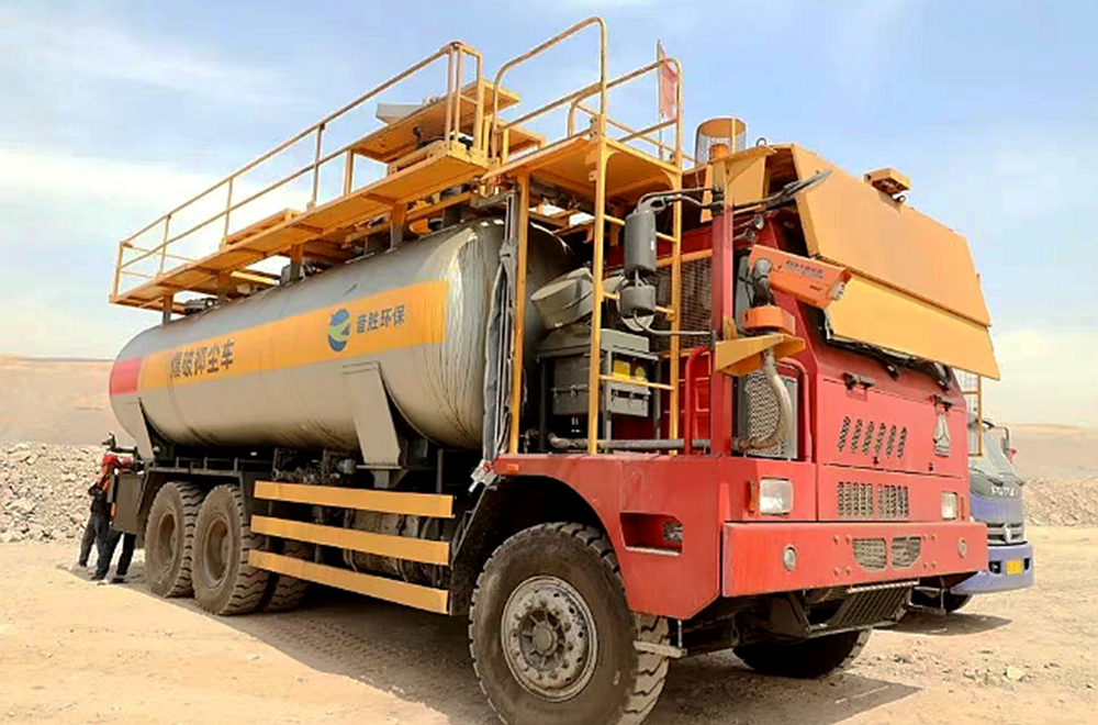 长期以来,爆破作业产生的粉尘污染一直是露天矿环境治理的难题。为破解这一困局,公司计划引进一批新型爆破抑尘车,利用高压喷嘴喷洒爆破抑尘剂,从而抑制粉尘扩散。该爆破抑尘车单次抑尘作业供水量约30m³,最大水流射距可达120m,有效控尘面积5000m²以上,能在40-60s内对大面积爆破区域进行有效降尘。同时,不同于传统抑尘设备,该车喷射和蓄能加压装置分离,车内加压完成后,加压装置撤离现场,极大提高了安全性。