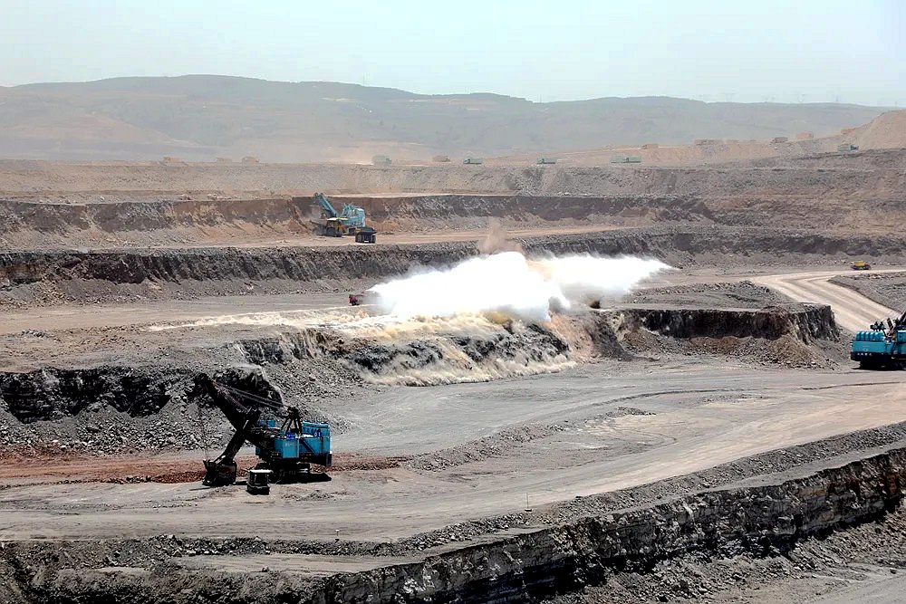 5月20日12时50分,伴随着一声震耳欲聋的轰响,黑岱沟露天煤矿南500米1075平盘爆破作业圆满完成。与以往不同的是,两台庞大的爆破抑尘车早已就位,在爆破瞬间启动高压喷雾系统。细密的水雾呈扇形喷涌而出,将腾起的烟尘牢牢笼罩,转瞬之间粉尘在水雾作用下迅速沉降。