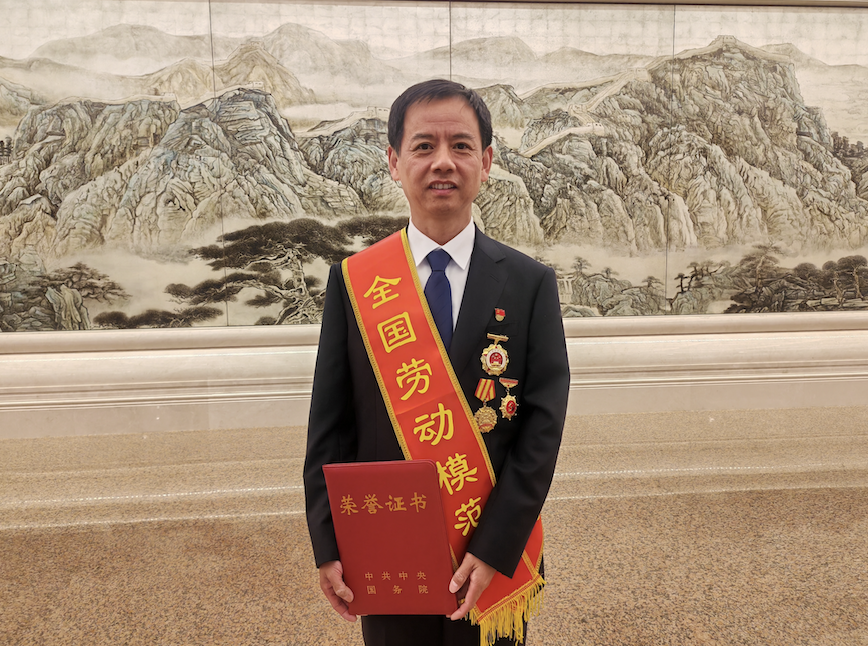 4月28日,庆祝中华全国总工会成立100周年暨全国劳动模范和先进工作者表彰大会在北京举行。庄严的人民大会堂里,一位个头不高、身形消瘦却目光坚毅的矿山工匠,身披绶带、胸戴奖章,接受属于劳动者的崇高荣誉。