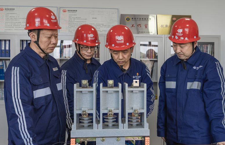 图为禹长征(右二)为班组职工讲解真空接触器知识 付泽/摄