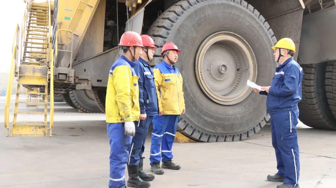 “刘贵珍,请你用五步工作法讲讲NTE360自卸卡车1000小时保养时,工作现场环境风险辨识的防控措施。”“好的,宋工。第一步检查出入口风险,防控措施是留意观察周边动态车辆……”刘贵珍自信满满地讲述着防控措施的细节。