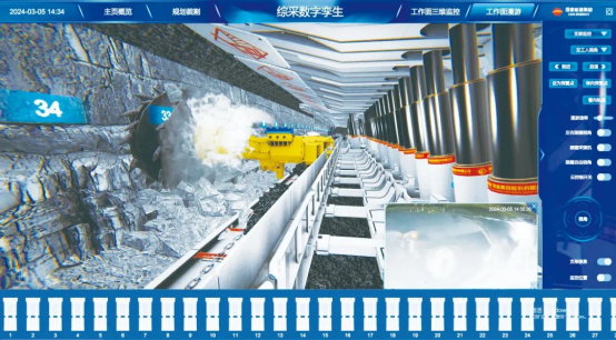 ▲图为位于陕西省榆林市的国家能源集团国神公司三道沟煤矿井下综采工作面生产数字孪生场景。