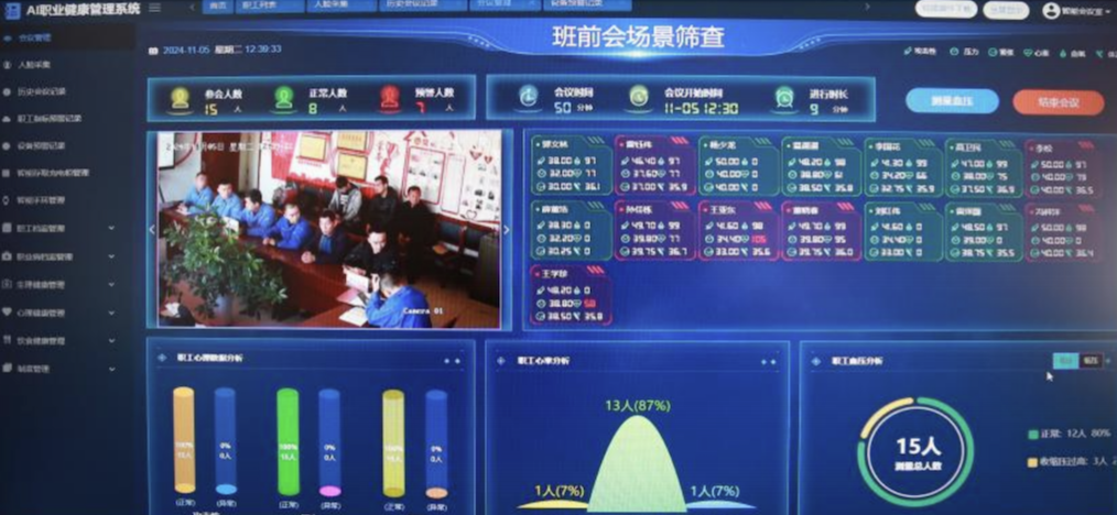 “AI医生”呵护安康。“血压偏高,情绪不稳定,不建议下井”……沙曲二矿开发应用“AI职业健康管理系统”(具备职工健康管理、班前会筛查预警2项功能),防控安全风险。“职工健康管理”系统可根据职工个人健康状况和需求,提供定制化健康建议和指导;“班前会筛查预警”系统通过为班组人员佩戴智能手环和情绪分析仪,实时监测职工身心状态,对异常情况进行预警。“用上‘班前会筛查预警’系统,可以把更多精力放在技术攻关上了。”队干部和班组长们直呼“减负了”。