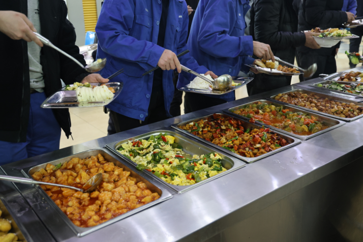 “不管几点升井,都能在爱心餐厅吃到热乎乎的饭菜,不仅口味适合,卫生也非常干净,吃饱了洗个澡回家,很是舒坦。”按照井下职工上下班时间,工会联合爱心餐厅合理安排用餐时间,从凌晨4:30到深夜2:00,服务从不“打烊”,每餐饭菜都有两种凉菜、四种热菜、两种主食、一种水果,为下井职工提供了真心、细心、精心、贴心的用餐服务。
