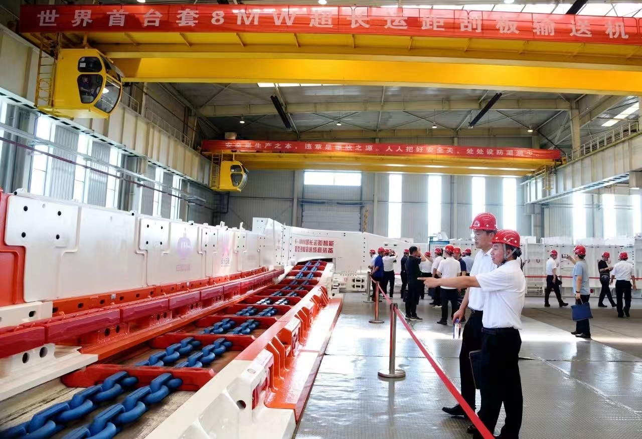7月10日,中国中煤张煤机公司研发的世界首台套8MW超长运距智能刮板输送装备联合试运转成功,配套关键部件均为中煤张煤机公司自主研发设计,“张垣”品牌煤机装备为煤炭产业的创新转型之路再添浓墨重彩一笔。来自中国工程院院士等行业专家团队一致认为,张煤机公司首次开发了满足采高3m以上煤层一次采全高的SGZ1400/8000型刮板输送设备,生产能力6000~8000t/h、输送长度400~600m,全生命周期整机预计寿命≥60Mt,满足了特厚煤层一次采全高年产20Mt工作面配套需要,整机实现全国产化研发制造,使用性能、可靠性、智能化程度均达到国际领先水平,下步可进入井下工业性试验阶段。