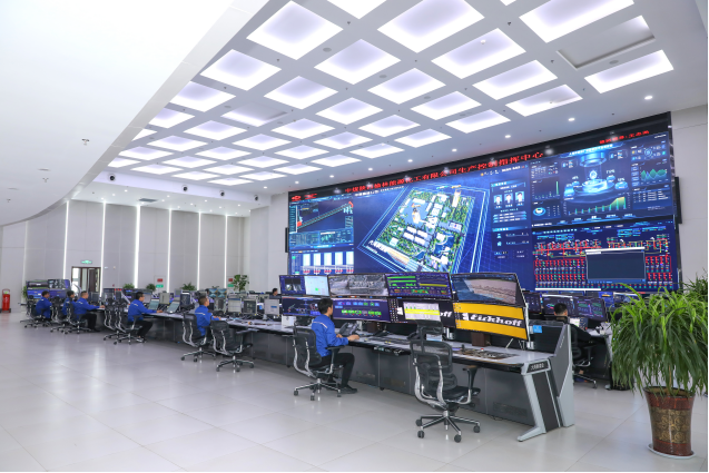 一期项目厂区不仅运行高效,智能化控制也融入每一个环节。集成自动化控制系统,自控投用率、数采率均达到95%以上。搭建智能巡检系统,实现24小时在线检测和全面感知预警。建立数字信息采集系统,远程监测与诊断全厂设备运行状态。在厂区交接班室,记者看到屏幕中正显示智能化巡检系统传输的生产现场画面,其中气化、压缩等涉及高温的区域为热成像监控,设备各个位置的温度在画面中实时显示。