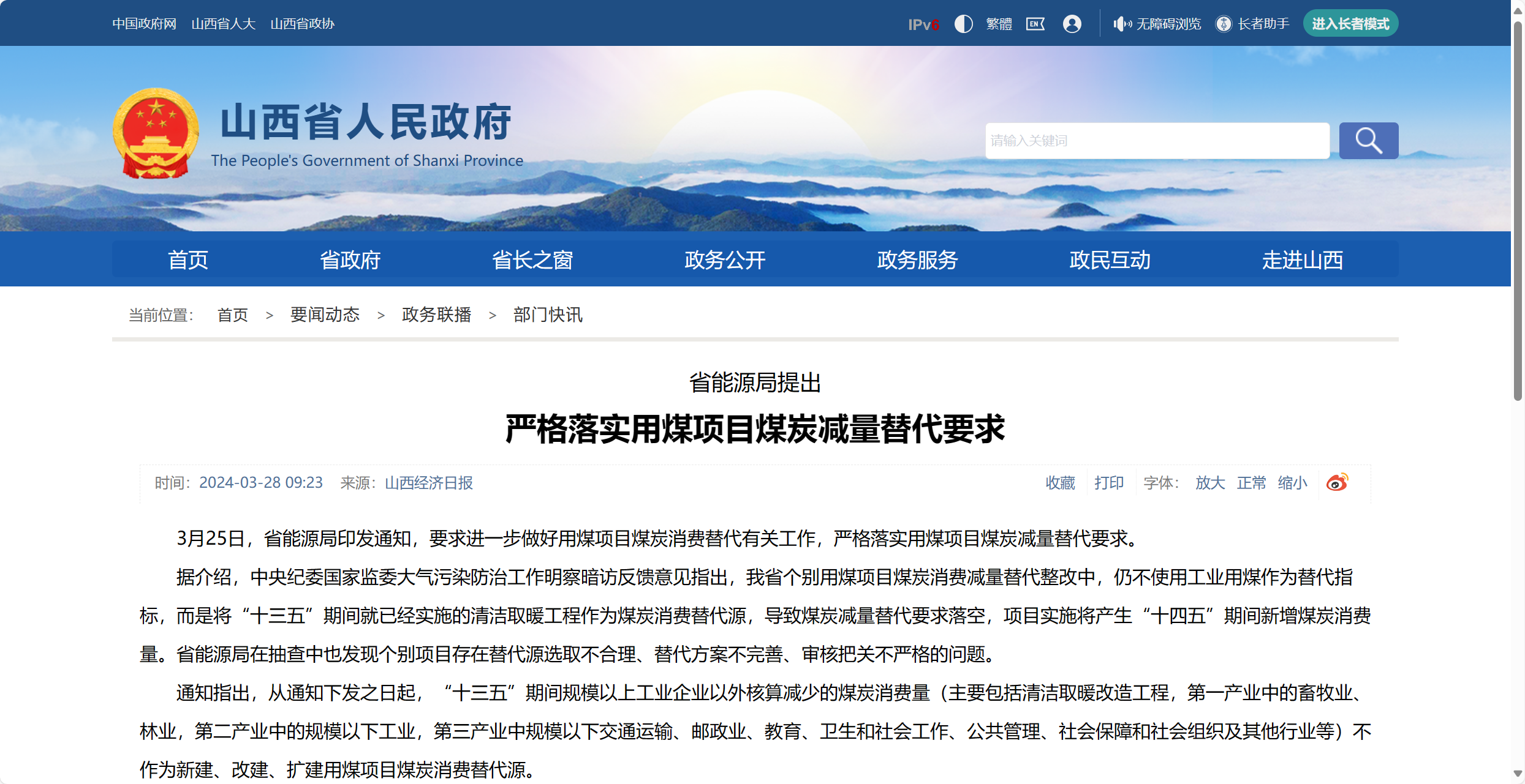 3月25日,山西省能源局印发通知,要求进一步做好用煤项目煤炭消费替代有关工作,严格落实用煤项目煤炭减量替代要求。
