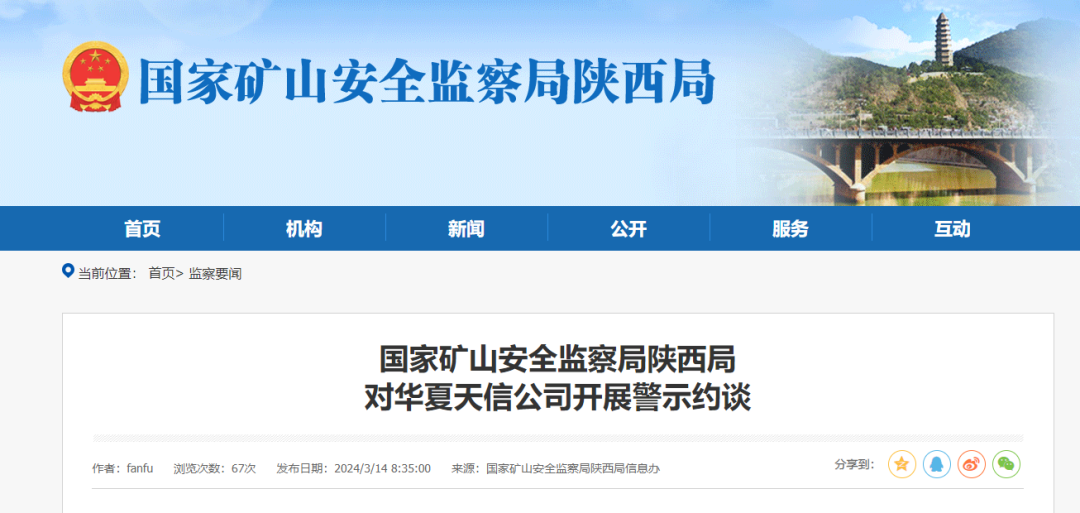 3月11日下午,国家矿山安全监察局陕西局二级巡视员张培仁带领信息办相关人员,对华夏天信智能物联(大连)有限公司(以下简称:华夏天信公司)开展警示约谈,华夏天信公司相关负责人参加会议。