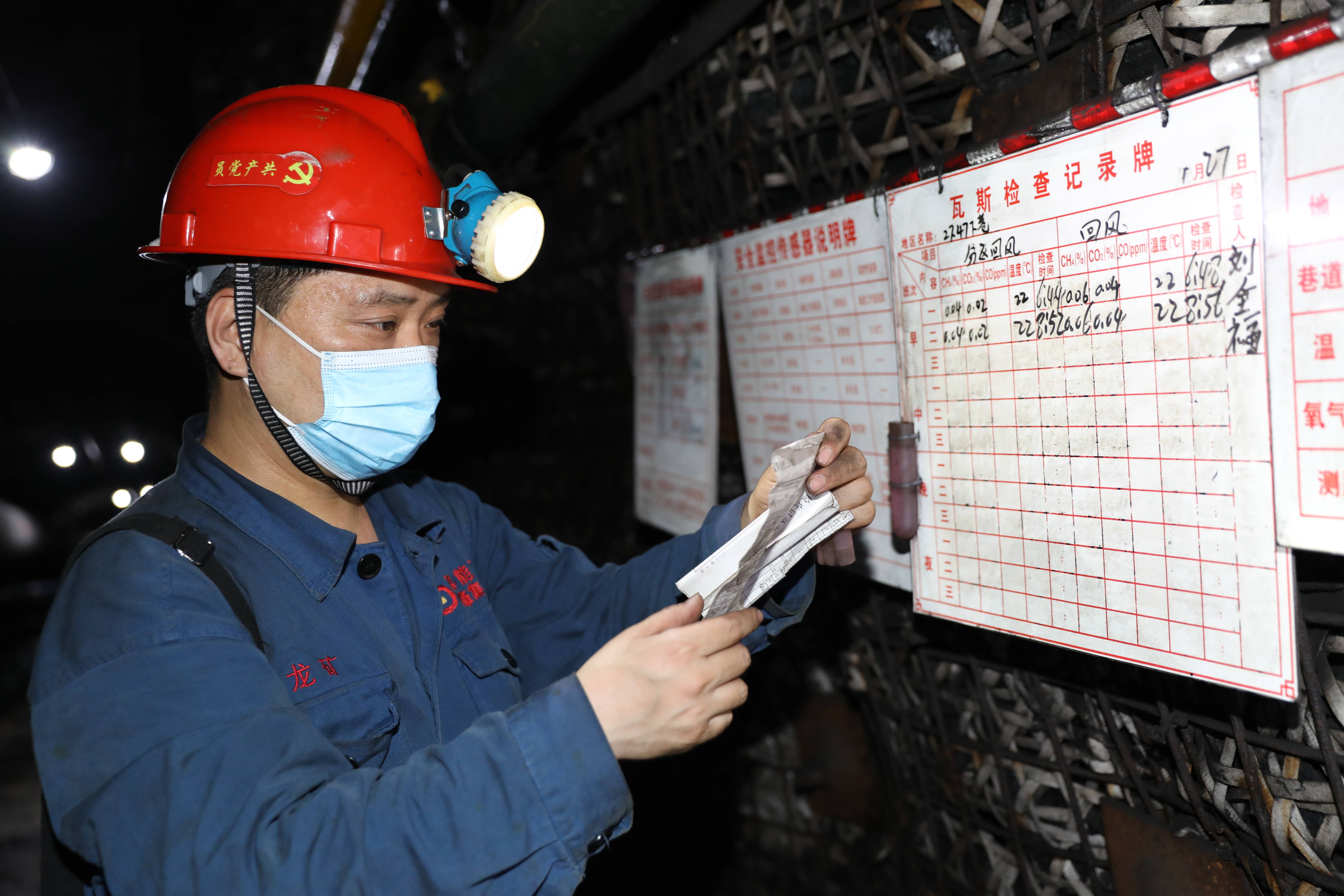 图二:冀中能源峰峰集团九龙矿瓦斯监测员正在对监测的瓦斯数进行登记、校对