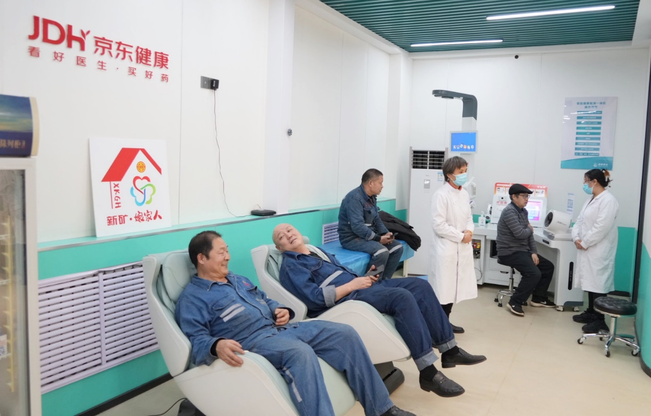 矿区与京东健康合作引入了包括健康体检一体机等专业仪器设备与互联网医疗服务资源,搭建了一套集健康检测、康复理疗、身心解压、应急救援等功能于一体的员工健康管理方案,充分满足矿区职工在就医诊疗、理疗康养等方面的健康需求。