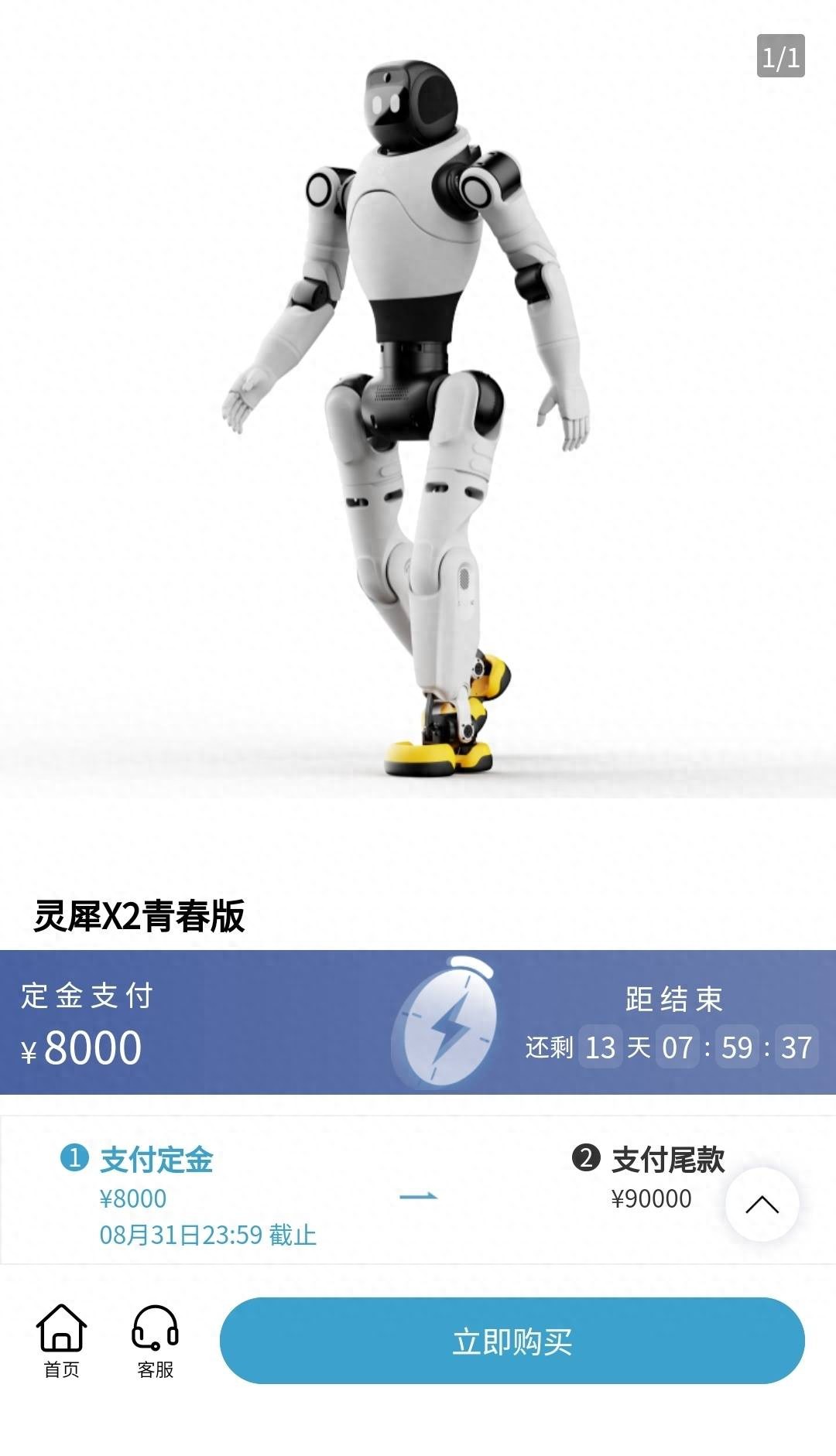 据介绍,此次上架的人形机器人型号为灵犀X2青春版,售价为9.8万元,它搭载了27自由度仿生关节与柔性外壳,可演绎30余种微表情传递拟人情绪。