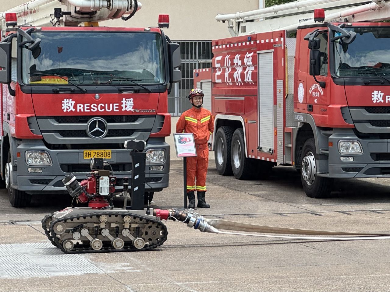 2025年7月31日,浙江省安全生产应急救援巨化中心的消防员正在进行应急演练。(南方周末记者李桂|摄)