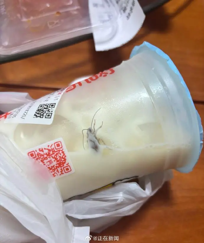 8月14日晚,消费者烧麦(化名)向《正在新闻》反映,她在蜜雪冰城赣州某店购买一杯茉莉奶绿,未开封就发现杯内有只蟑螂。