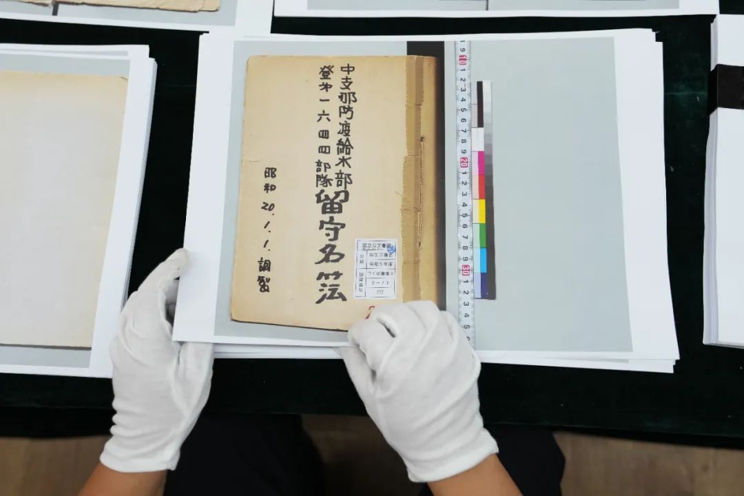 工作人员展示侵华日军相关相册(影印件)。新华社记者王松摄