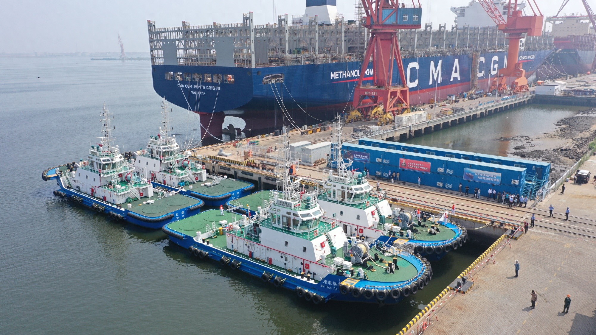 我国北方规模最大电动拖轮船队投入使用(央广网发 天津市交通运输委供图)