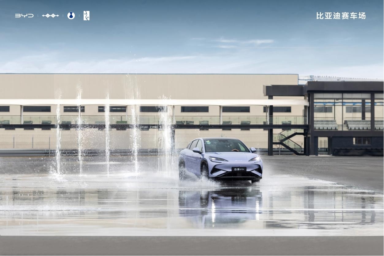 国内首创的44米直径低摩擦环形道,采用3万多块玄武岩砖拼接,配合3mm均匀水膜控制系统,摩擦系数介于冰面与雪地之间。无论是驾驶海狮07还是腾势Z9GT,普通用户都能轻松实现稳定漂移,直观感受比亚迪毫秒级电控响应与车身稳定系统的实力,让“漂移”从专业车手专属变为全民乐趣。