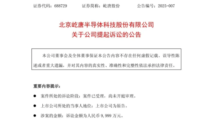 公告还表示,截至本公告披露日,该案件已立案,尚未开庭审理。屹唐股份表示,本次诉讼不会对公司经营方面产生重大不利影响,也不会影响公司正常生产经营。最终实际影响将取决于法院生效判决结果。