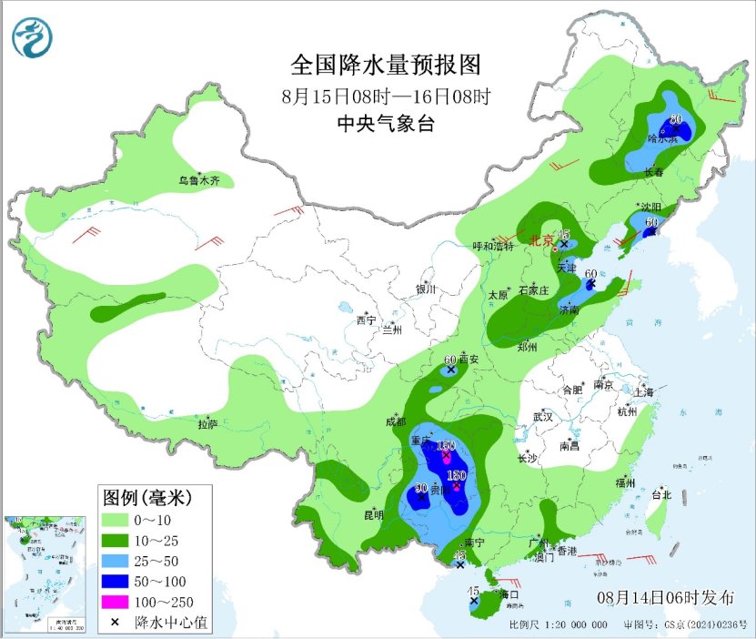 值得关注的是,未来一周,华北、东北等地多降水过程,部分地区伴有短时强降水、雷暴大风或冰雹等强对流天气。其中今天,内蒙古中西部、山西北部、河北北部、北京西北部等地局地将有雷暴大风或冰雹天气;明天,东北地区、华北等地雨势加强,黑龙江中南部、吉林西部、辽宁东部、河北东部、山西南部、山东北部、陕西南部等地有大雨,局地暴雨。公众需及时关注最新天气预报预警信息,外出携带雨具,警惕局地强降水或强对流天气对日常生活的不利影响,注意出行安全。