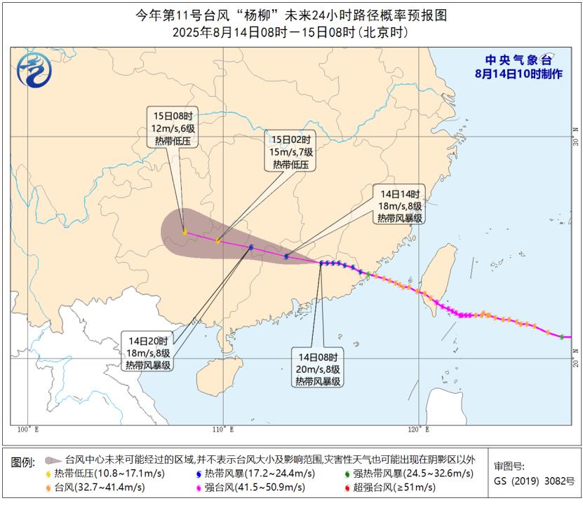 据中央气象台网站消息,台风“杨柳”已于14日凌晨在福建省漳浦县沿海再次登陆,登陆时由台风级减弱为强热带风暴级。受其影响,过去24小时,台湾岛大部、福建东南部、广东东部、江西南部等地出现暴雨或大暴雨,台湾岛南部局地特大暴雨。今明两天,台风“杨柳”将给江南南部、华南、西南地区东部等地带来强降雨天气;未来一周,东北地区、华北等地多降雨和强对流天气。
