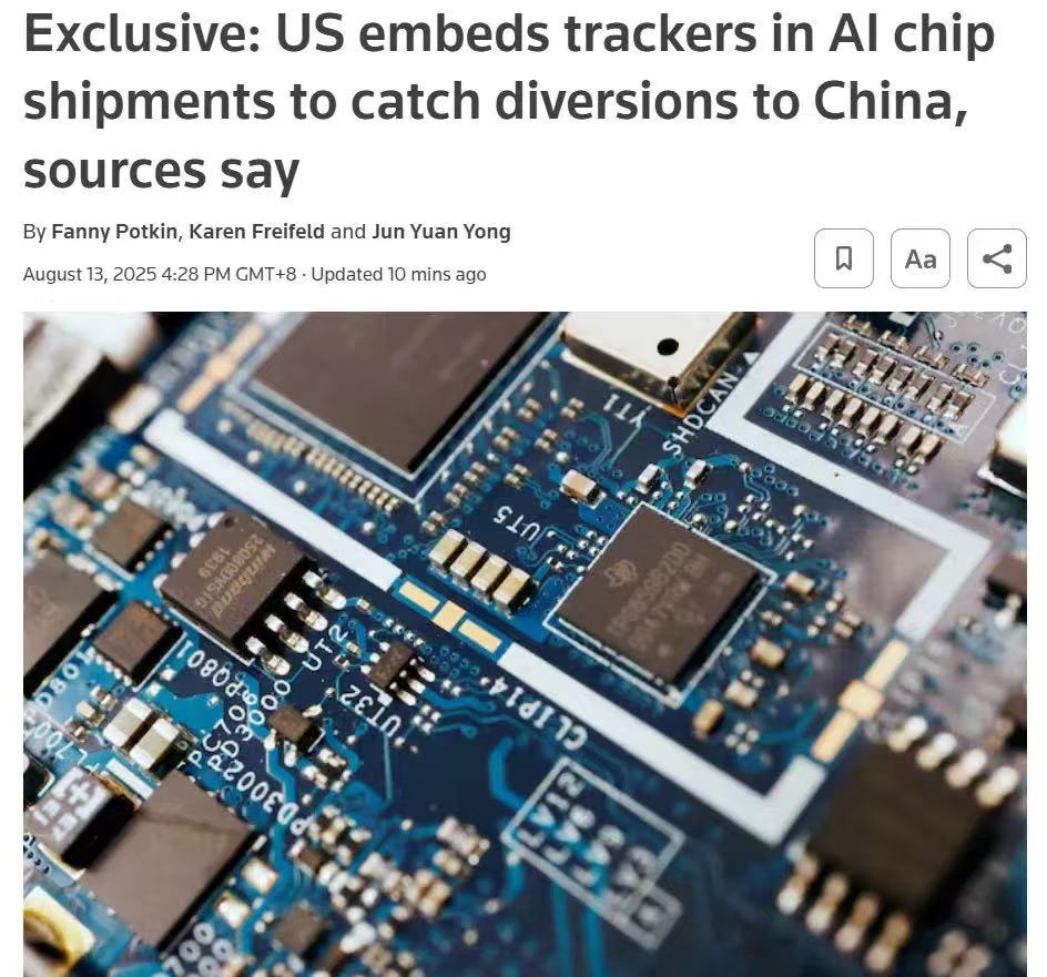 最近,国家网信办就美国英伟达算力芯片漏洞后门安全风险约谈该公司问题受到关注。与此同时,越来越多美国给芯片安“后门”的内幕也被曝光。8月13日,路透社又刊发独家报道爆料,美国秘密在人工智能相关芯片中设置追踪器,以发现“芯片被转运至中国的情况”。