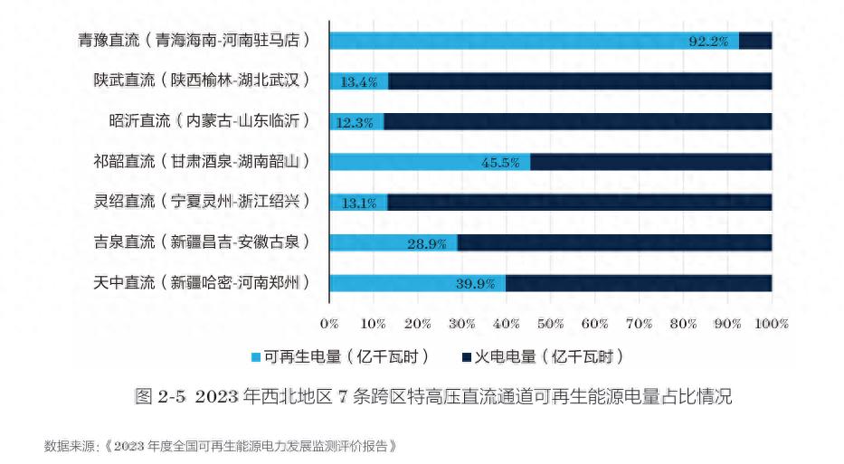 目前,西北地区新能源占跨区域输电比例仍然不高。
